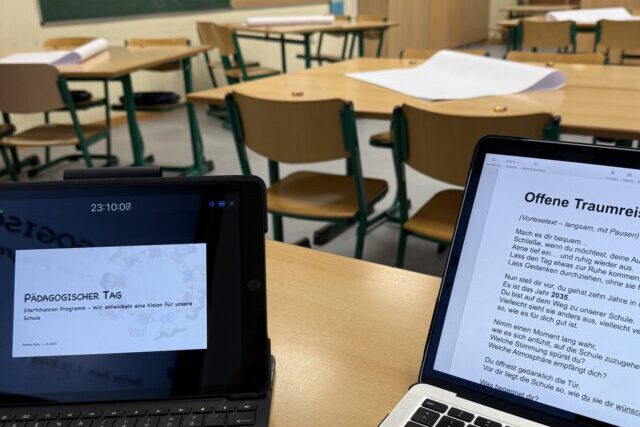 Auf zur Traumschule Am vergangenen Montag traf sich unser Kollegium zum pädagogischen Tag, und unsere kommissarische Schulleiterin Dorina Joch schickte