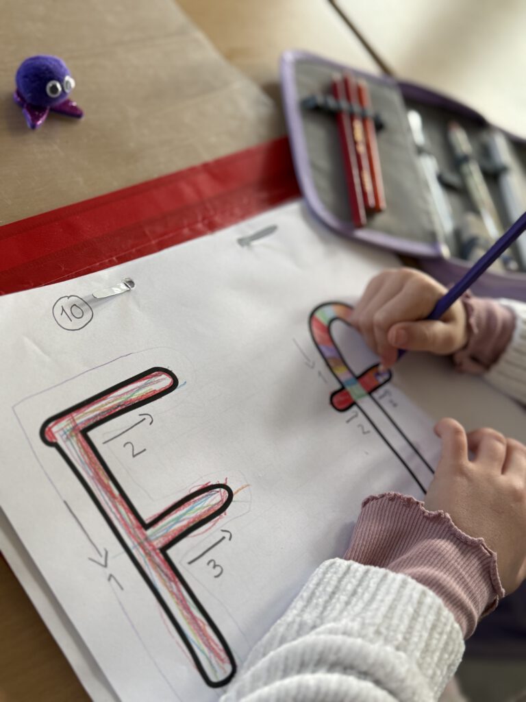 Heute haben wir den Buchstaben F kennengelernt und dazu verschiedene spannende Stationen bearbeitet.